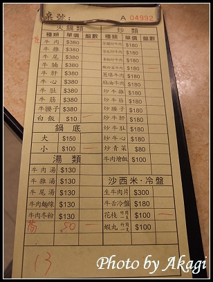 看了一下菜單,價位比高雄略貴了些,火鍋料跟炒菜類大概都是貴了