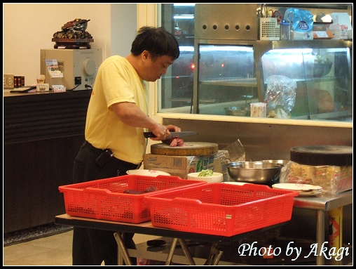 裝好沾醬之後,老闆也切好一盤肉送上來了,想起之前去高雄牛老大